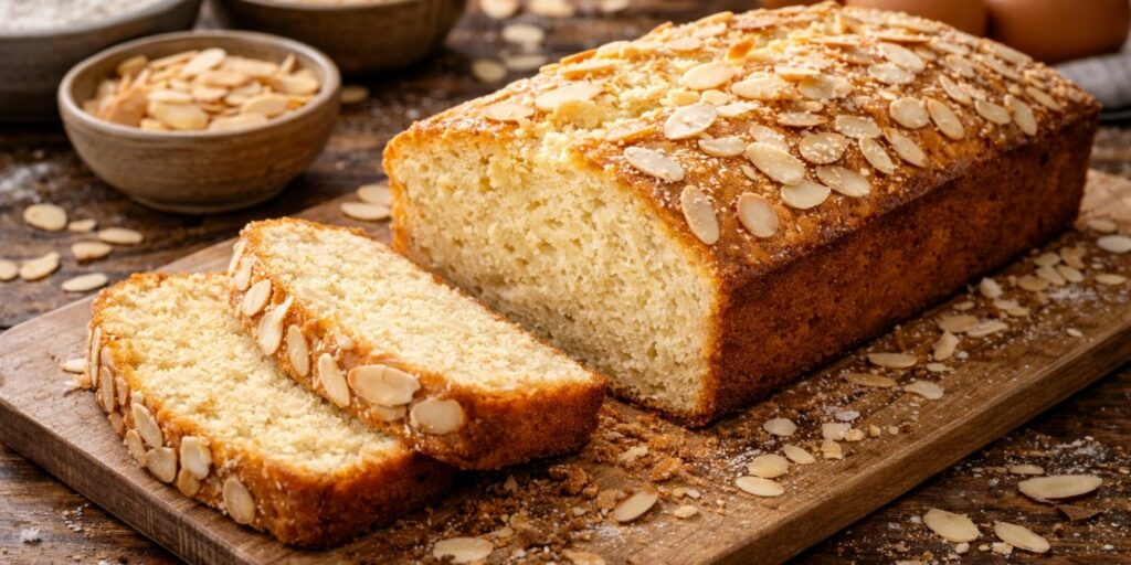 La poudre d’amandes remplace une partie de la farine. Elle apporte du moelleux et une saveur douce. Les œufs assurent la structure du gâteau. Le sucre équilibre l’ensemble. Le beurre fondu garantit une texture fondante.