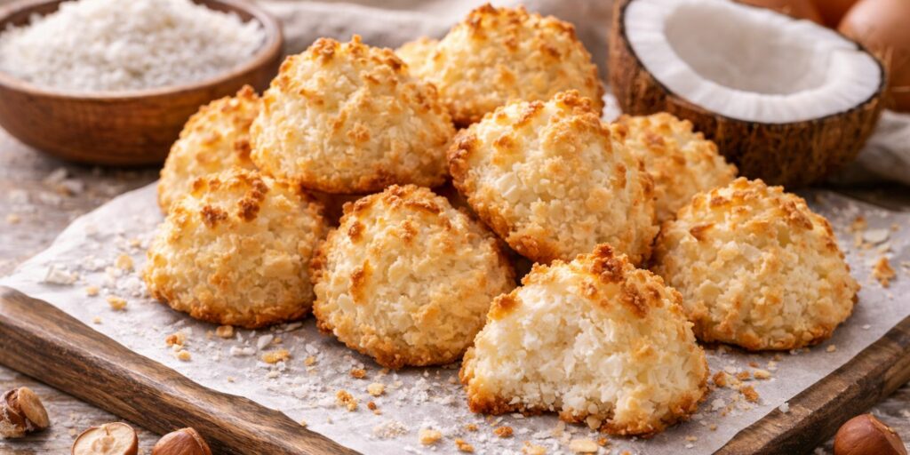 Les rochers coco sont des petits biscuits moelleux et gourmands. Ils ne demandent que trois ingrédients et se préparent en quelques minutes. Leur texture est croustillante à l’extérieur et fondante à l’intérieur. C’est une recette parfaite pour utiliser un reste de noix de coco râpée. Simple et efficace.