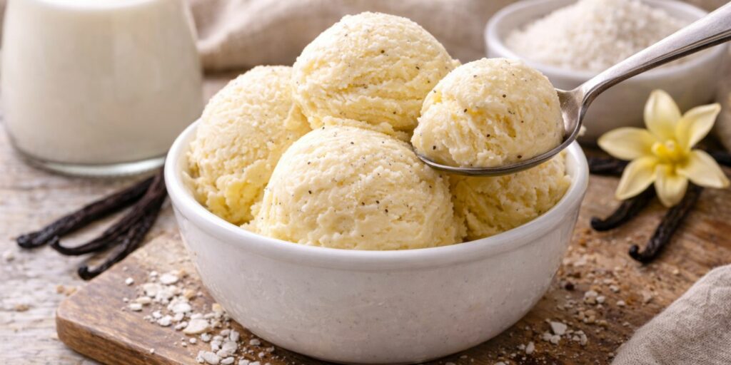 La glace à la vanille maison peut se préparer sans œufs et sans sorbetière. Elle est onctueuse et très simple à réaliser. Cette recette ne demande que trois ingrédients basiques. Parfaite pour l’été ou pour accompagner un gâteau. En quelques étapes, votre glace est prête à congeler.