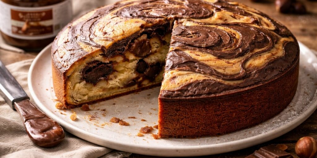 Le gâteau marbré au Nutella est un classique revisité avec une touche encore plus gourmande. Il se caractérise par ses jolies spirales de pâte au chocolat et de pâte nature. Ce contraste visuel donne un résultat très appétissant dès la découpe.