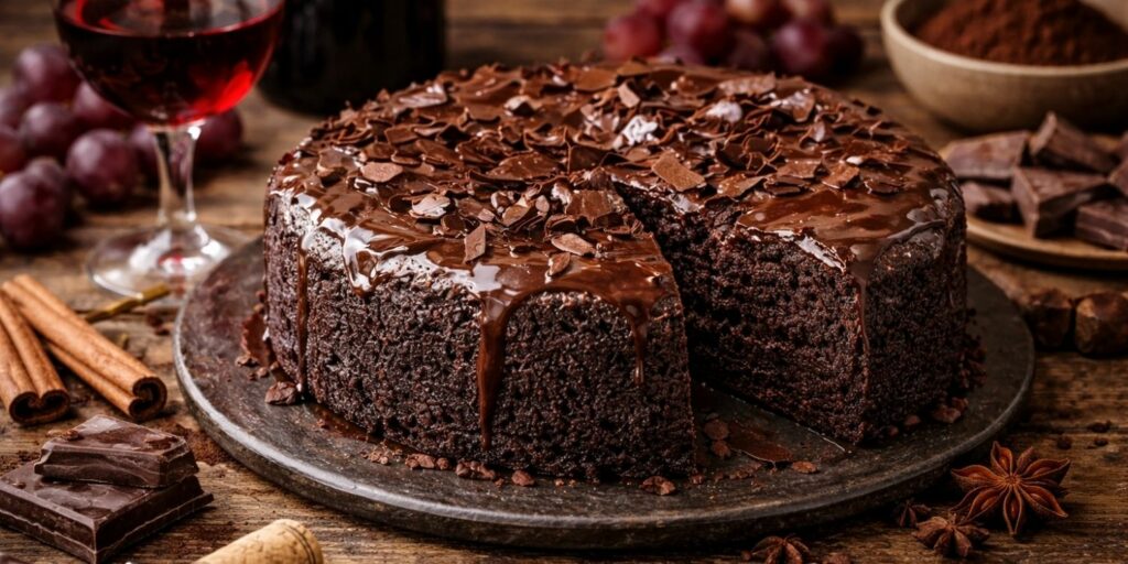 Le gâteau au vin rouge et au chocolat est un dessert riche, parfumé et très moelleux. Le vin rouge vient intensifier le goût du chocolat tout en apportant une légère profondeur aromatique. Ce mélange surprend souvent au premier abord, mais il offre un équilibre remarquable entre douceur et caractère.