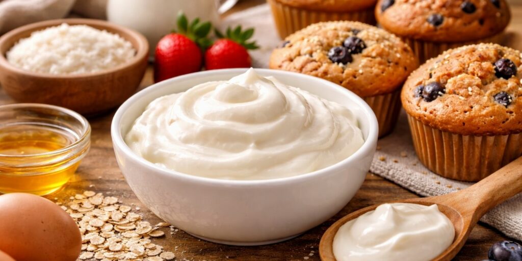 Le yaourt nature est un excellent substitut pour alléger les recettes. Il apporte de l’humidité et rend les gâteaux plus aériens. Son goût doux ne modifie pas fortement la saveur finale. Il convient parfaitement aux cakes et aux muffins.